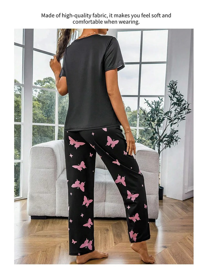 Comfortable And Fashionable Heart Butterfly Printed Set Women’s Nightwear