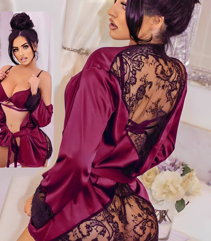 Elegant 3-Piece Lace & Satin Lingerie Set Luxurious Stylish Sleepwear