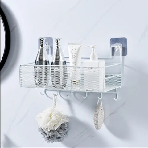 Upgrade your bathroom or kitchen organization with our Mesh-Style Wall-Mounted Storage Rack with Hooks! This versatile storage solution features a sleek mesh design and a sturdy construction that can hold all of your bathroom or kitchen essentials. The wall-mounted design saves valuable counter space and allows for easy access to your items, while the hooks provide additional hanging storage for towels, loofahs, utensils, or other items. With its versatile design and sturdy construction, this storage rack is perfect for holding everything from shampoo and soap to spices and condiments. Plus, the free punch installation makes it easy to install and move around as needed. Add some style and functionality to your bathroom or kitchen with our Mesh-Style Wall-Mounted Storage Rack with Hooks today!